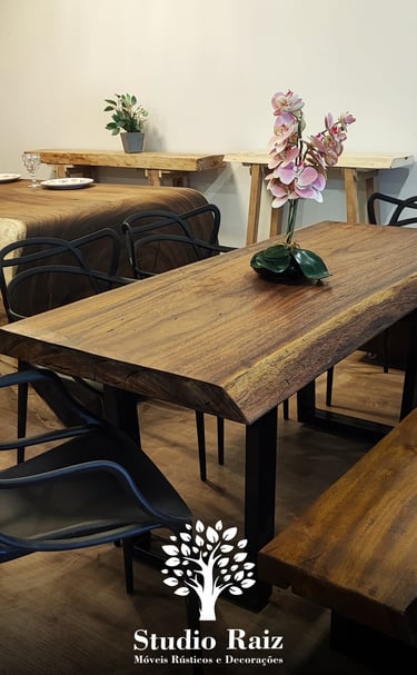 Peças rústicas exclusivas, feitas com madeira natural e acabamento premium.